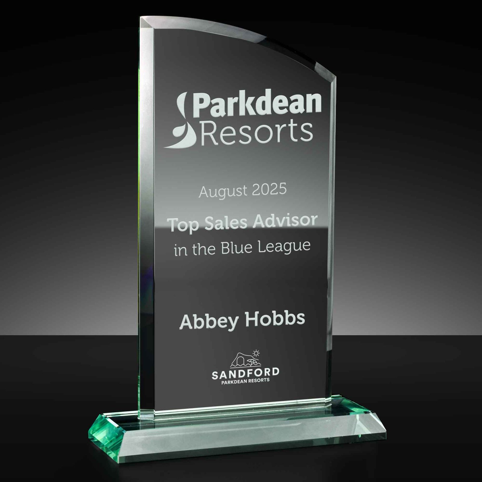Bridge Curved Top Jade Glass Award 21cm (8 1/4″)
